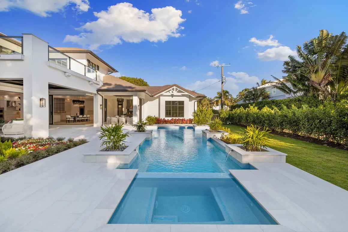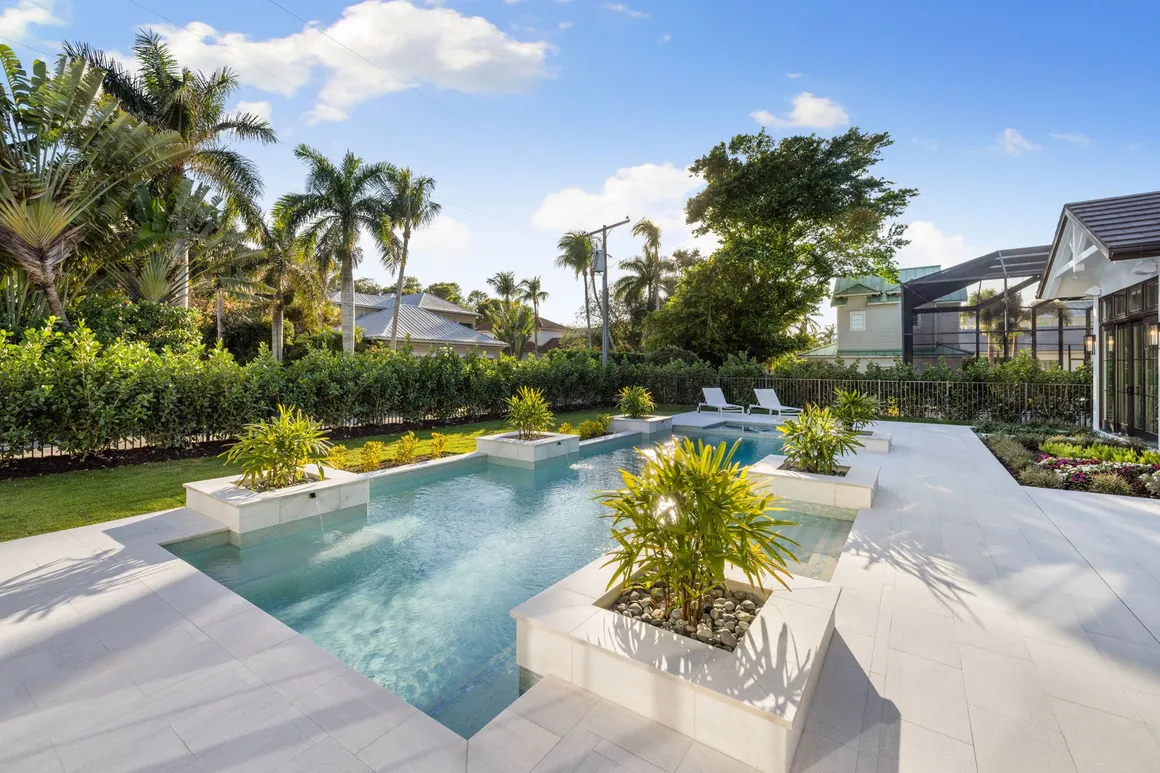 Classic Pools of Naples is a Naples pool construction company with 25+ years experience. As one of Southwest Florida’s most trusted luxury pool builders, we were proud to build this beautiful residential pool in the heart of downtown Naples, Florida. The integrated spa, foliage, and water features make this custom pool a wonderful outdoor living space that brings value to the property and life of the homeowner.