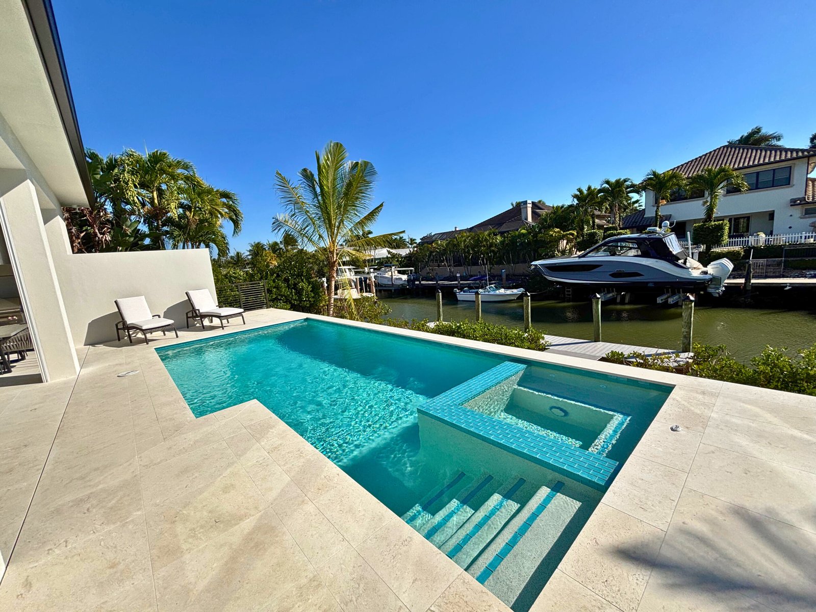 Looking for custom pool design Naples Florida? Trust Classic Pools of Naples, an expert in building, renovating, and servicing luxury pools throughout Southwest Florida for 25+ years. This custom, luxury pool we built on Curlew Avenue in Naples is a perfect example of our custom design expertise. It features a beautiful integrated spa, fit perfectly on their fabulous deck overlooking the water. Please contact us to design a custom-built pool for your property today.