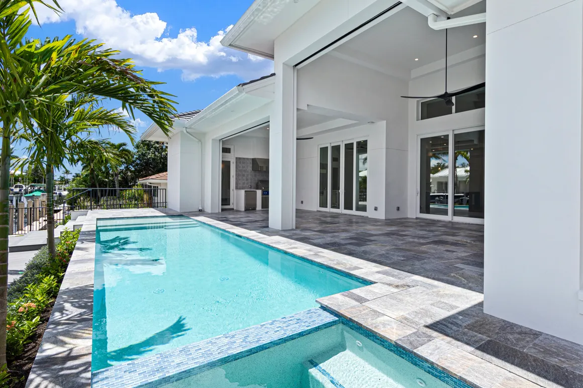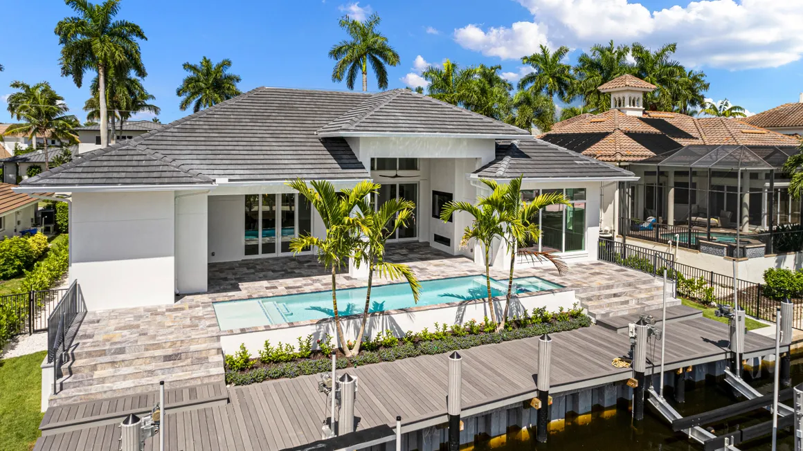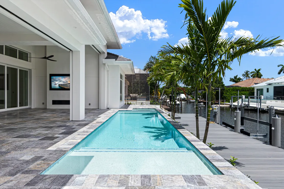 Classic Pools of Naples is one of the most trusted pool companies in Naples. With 25+ years of experience, we build, renovate, and service luxury pools throughout Southwest Florida. For example, we built this pool on a beautiful waterfront property on Snook Drive in Naples. It features a stunning integrated spa and sun shelf, perfect for evening sunset views. Please contact us if you would like to explore creating a pool like this.